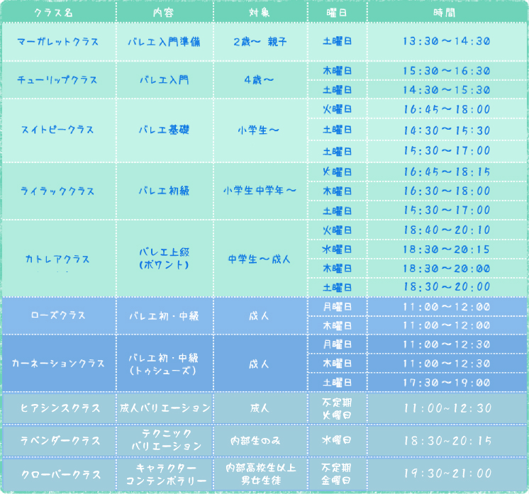 クラスのご案内